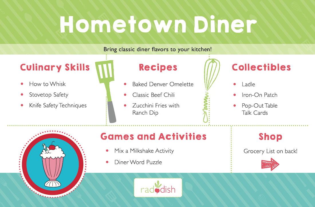 Hometown Diner is your chance to open a restaurant! Serve up familiar favorites with a twist – a baked Denver omelette, flavorful chili, and crispy zucchini fries. Create custom-made milkshakes for dessert!